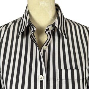 Women's Lands' End black and white striped long sleeve button down boyfriend tunic, size XS 2-4. This is no-iron, has one chest pocket, and button sleeves. NWT! Machine washable. Smoke free pet free home. Quick shipper!
