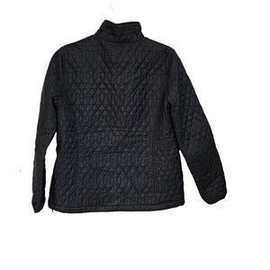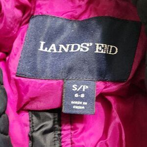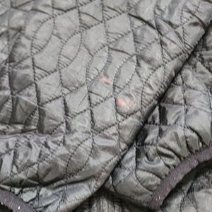 Lands' End black quilted zip front jacket with pockets has small stain as shown in picture 38" bust 23" long