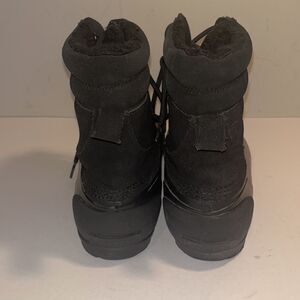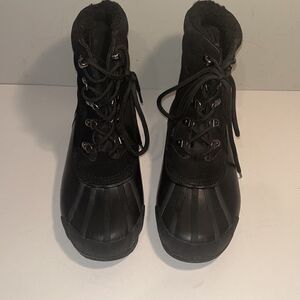 Lands End black suede leather upper and rubber duck boots.
