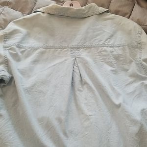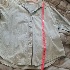 Land's end blue button down, great condition, a little discoloration on the collar (just a little lighter but not too noticable). Comes with extra buttons. Measurements in pics. It's a light jean color but not jean material