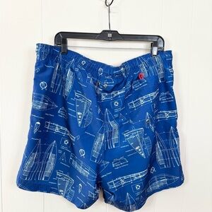 Lands End blue white printed swim trunks swim shorts size mens XL (40-42)