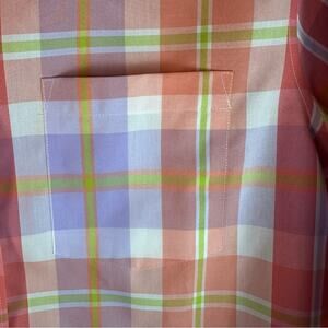 Lands' End button-down shirt 3/4 sleeve plaid, pastel spring, colorful