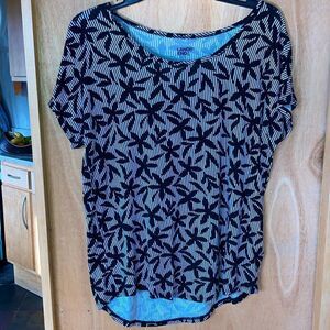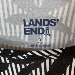 Land’s End cap sleeve stretch tee black cream stripe floral print long tail S
