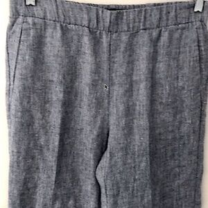 Land’s End chambray linen blend blue pull on elastic waist pants pockets SZ 6