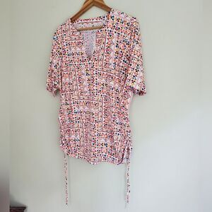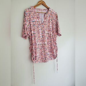 Lands' End colorful nylon spandex short sleeve v neck top size 1X