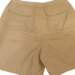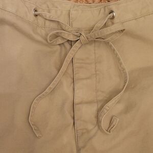 Really cute flat-front shorts with 4 pockets (2 in back are Velcro closure), button fly with top snap, and drawstring waist.