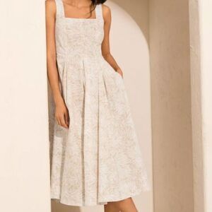 Lands End cotton midi dress 12 p l 12p beige white summer Sundress new 134.95