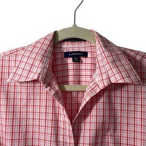 Lands’ End cotton plaid no iron pinpoint oxford 16W.