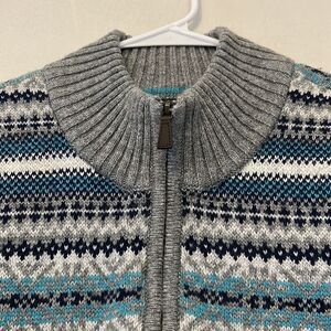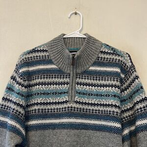 Lands End gray long sleeve patterned quarter zip sweater Size L