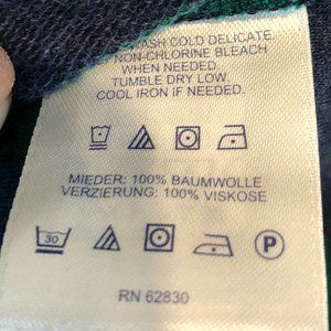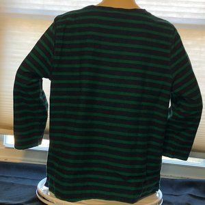 This is a warm sweater with green and blue stripes with a pink anchor. Great for boating or just keeping warm.