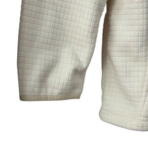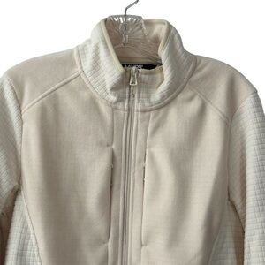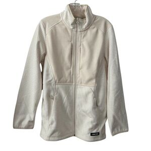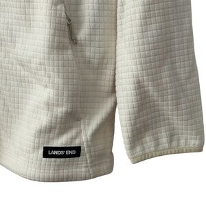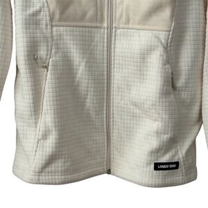 Lands' End Women's Ivory Grid Fleece Jacket Size S Mid-Length Casual Zip Pockets