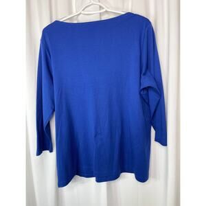 Lands’ End Land’s blouse shirt top women’s size 1x 16 – 18 royal blue knit cotton blend. Pictures of the material and care tags are available in the listing.