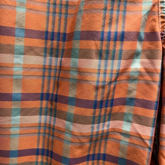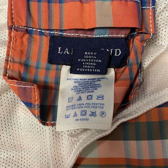 Lands End mens orange plaid swim trunks/board shorts/ size med/ nice fabric