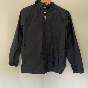 Lands' End navy blue women's size medium nylon windbreaker jacket with hood