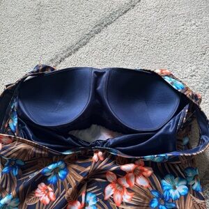 Lands End one piece floral bathing suit swimsuit scoop Neck Soft Cup navy 20W
