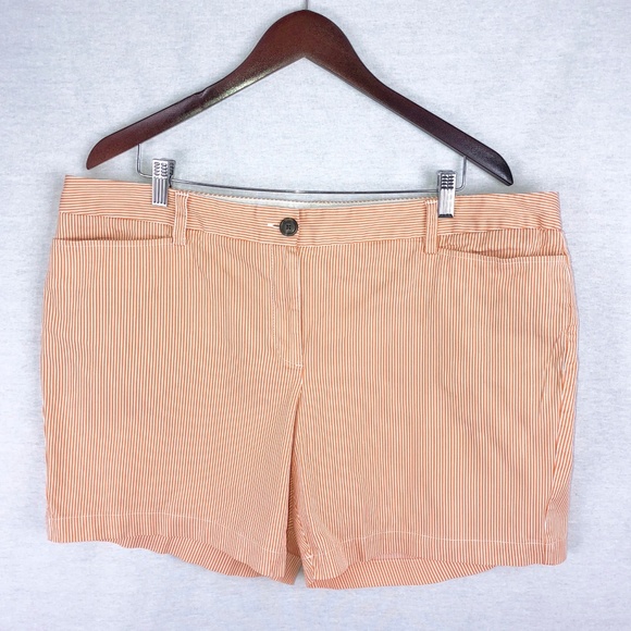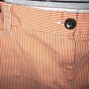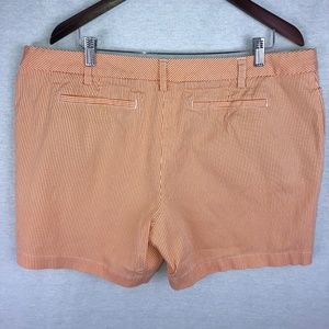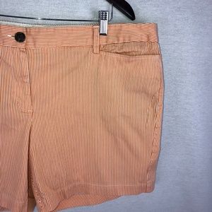 Cute orange and white stripe shorts by Land's End. These have a slightly raised ribbing to the stripes and has double front functional pockets. Fit 2. Excellent used condition