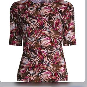 Land's End palm print short sleeve rashguard BLACK PINK tan size palm print L