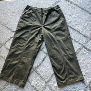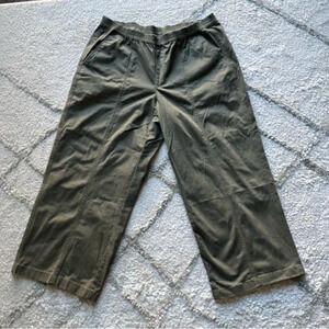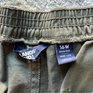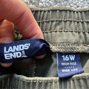 Lands End pants high rise wide leg green army green pull on casual outdoor 16W