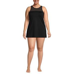Land's End plus size power mesh one piece swimsuit dress adjustable black 18W