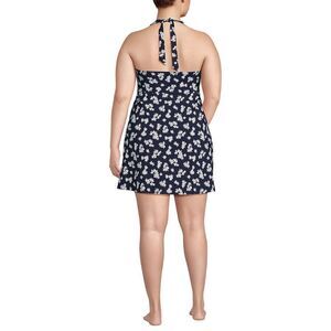 Land's End plus size halter one piece swimsuit deep sea navy tipsy floral Large