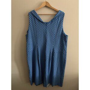 Lands' End ponte knit sleeveless dress size 26 Blue polka dot Retro Pinup