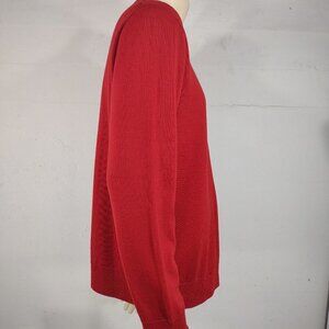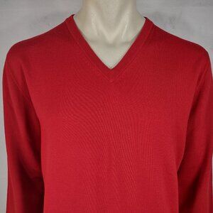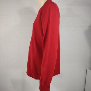 Lands' End red 100% Wool lightweight V-Neck pullover sweater mens Large