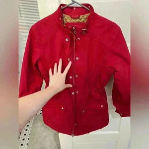 Lands End red puffer winter jacket with pockets & adjustable waist line size S