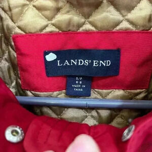 Lands End red puffer winter jacket with pockets & adjustable waist line size S/P womens 6-8