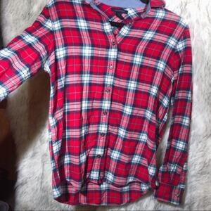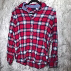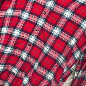 Lands’ End red white Twilightcore plaid checkered button down shirt xs