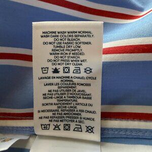Women's Lands' End red, white, and blue striped long sleeve collared button down boyfriend tunic shirt, XSP 2-4. This is a "no iron supima" with one chest pocket and button tab sleeves. NWT! 100% Cotton. Machine washable.