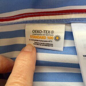Lands' End red white and blue striped long sleeve collared button down shirt XSP