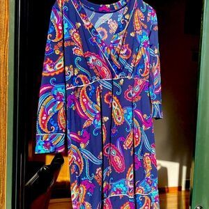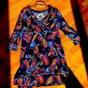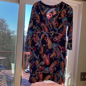 New Land’s End New retro paisley 3/4 sleeve, swim cover-up day or dress 6-8 Small