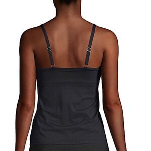 New Land’s End Tankini top Ruffled underwire with removable foam pads tummy control technology Navy white polka dot 10 DDD.