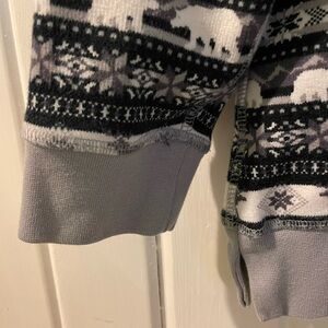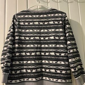 VGUC with no noticeable defects at all. Size small petite black, grey and cream French terry serious sweatshirt with animals. Armpit to armpit 19” centerback length 23 1/4 top of shoulder to bottom of sleeve 20”. Tote 15.