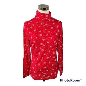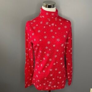 Lands End shaped fit red snowflake long sleeve turtleneck size small