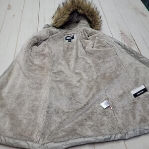 Lands End silver down alternative long puffer jacket winter coat fur