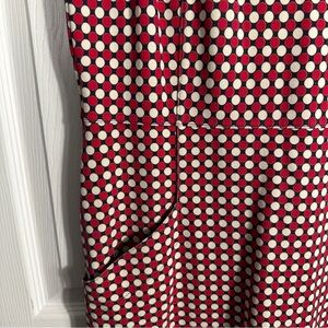 Lands' End size 12 dress, navy w/red & white polka dots, spring, summer, office