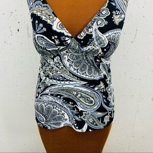 Land's End size 4 Black & Gray Paisley Swim Tankini Top