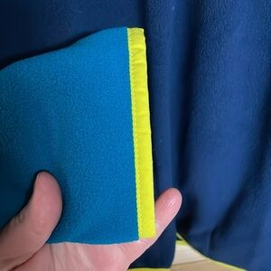 Lands’ End size XL navy, blue, neon yellow quarter snap fleece pullover top