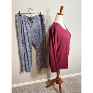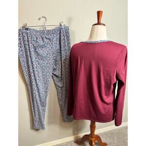 Lands' End sleep set maroon long sleeve top & floral pull on pants stretch Sz L