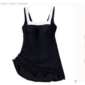 Lands' End swimsuit $135 new nwt s black Texture Square Neck modest Swim Dress