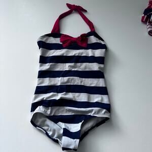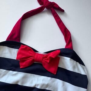 Red white and blue Patriotic Americana 4th of July One piece Stripe Halter Bow front Swimsuit Some piling on bum #kelli