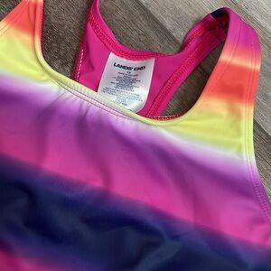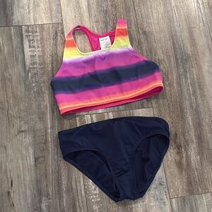 Lands’ End tie dye striped girls sports style bikini top and navy bottom size 12