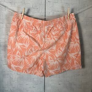 Lands End tropical Hawaiian shorts stretchy waistband packets striped peach and white