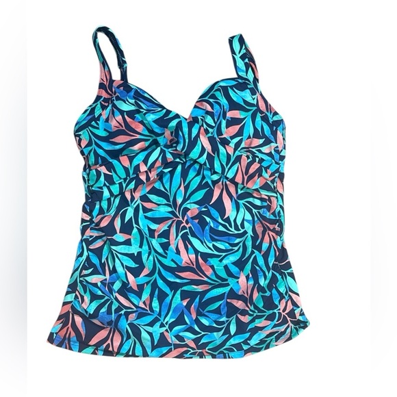 Lands End underwire tankini top floral sea navy leaves size 4 NWT palm v neck