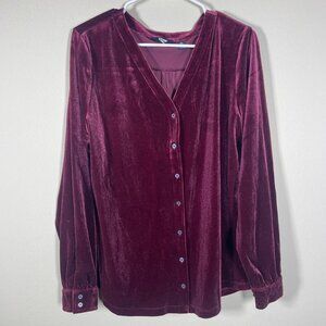 Lands End velvet Shirt Long Sleeve Button Down Women's XL Cranberry!