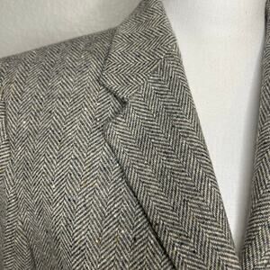 Lands End women's 100% lambswool gray herringbone 4 button lined blazer 10P