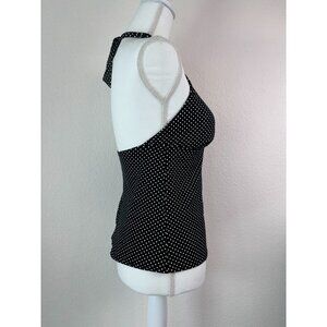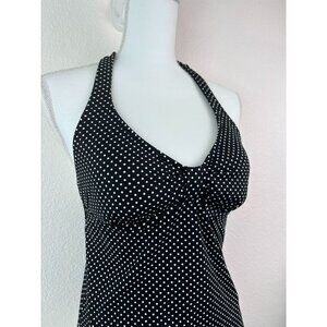 Lands' End women's 6L black and white dot tankini swim top halter tie