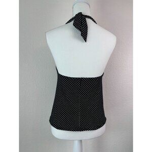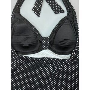 Lands' End brand women's size 6L black and white dot tankini top. In excellent pre-owned condition. Halter tie on a sweetheart neckline. Sewn in lightly lined top.