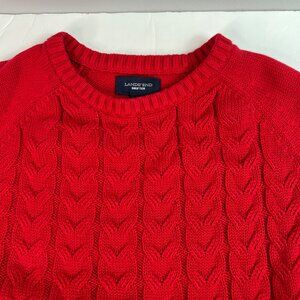 Lands End women’s Drifter Red Cable Knit Sweater Size M petite (10-12) Crew Neck